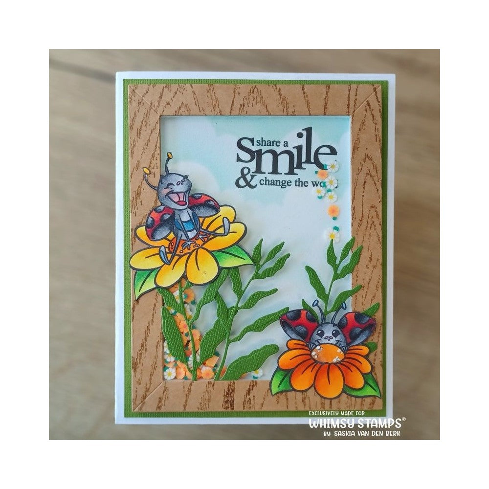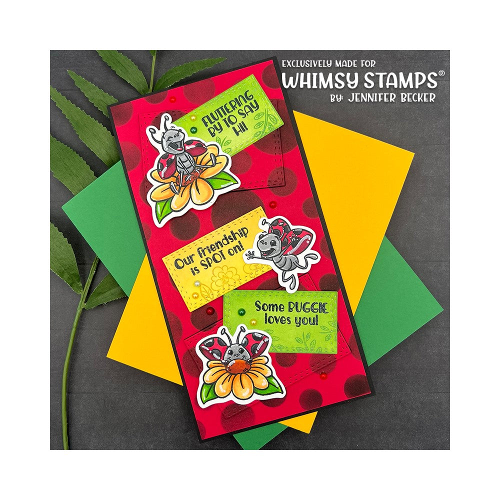 The Lady Buggies stamp set is part of the Clearly Whimsy Stamps Collection and features charming illustrations and sentiments designed by Krista Heij-Barber for Whimsy Stamps. These high-quality photopolymer clear stamps are perfect for adding whimsical and fun designs to your paper crafts.