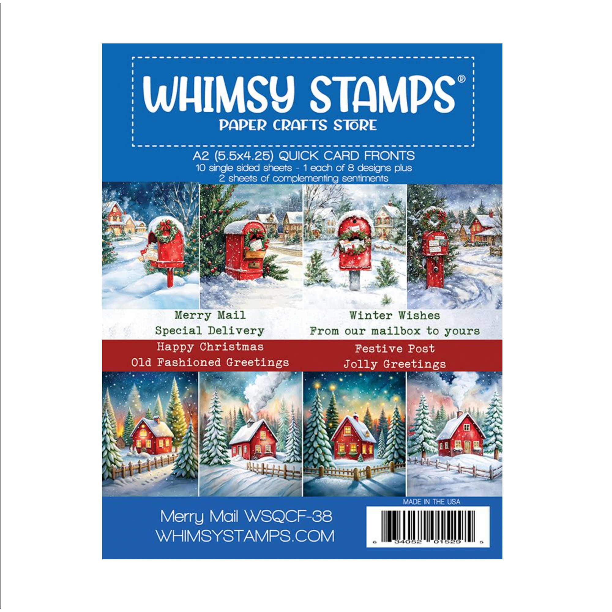 Send warm holiday wishes in an instant with the Whimsy Stamps Merry Mail Quick Card Fronts. This collection features charming winter scenes filled with festive mailboxes and cozy cottages, perfect for creating heartfelt Christmas cards, journal pages, and seasonal mixed media projects. Each pack includes A2-sized, 5.5 x 4.25 inch, high-quality cardstock sheets printed in full color—10 sheets total, with 8 scenic designs and 2 coordinating sentiment sheets to help you create fast, fun, and fabulous projects.