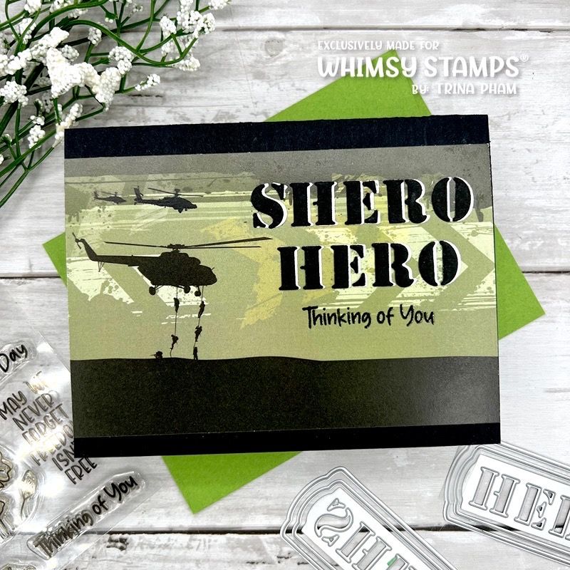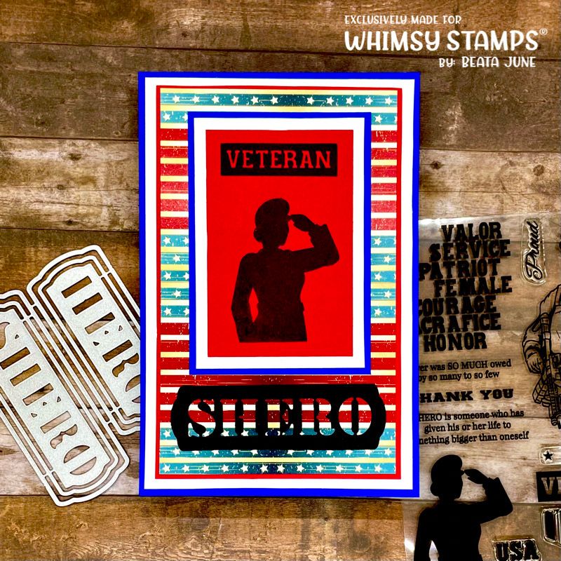 The Whimsy Stamps Die Collection Military Hero and Shero Die Set is a set of six thin metal dies designed by Deb Davis for Whimsy Stamps. These dies are designed to coordinate with the Military collection of products from Whimsy Stamps.