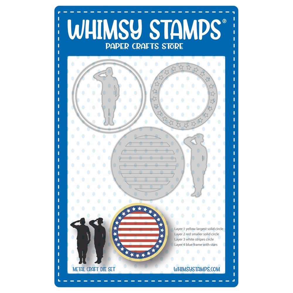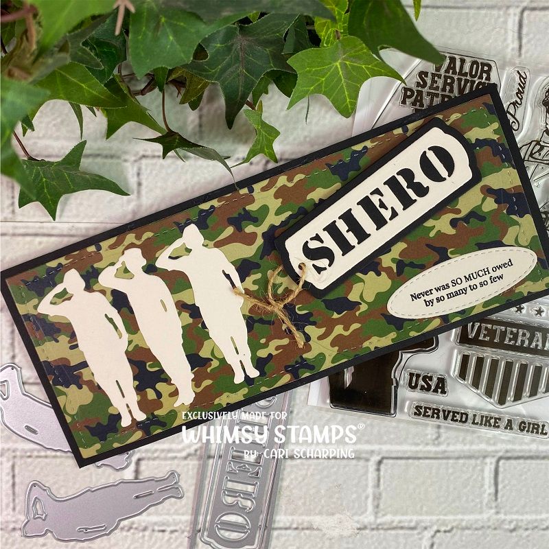 The Whimsy Stamps Die Collection Military Sheroes Die Set is a set of six thin metal dies designed by Deb Davis and Denise Lynn for Whimsy Stamps. These dies are designed to coordinate with the Military collection of products from Whimsy Stamps.