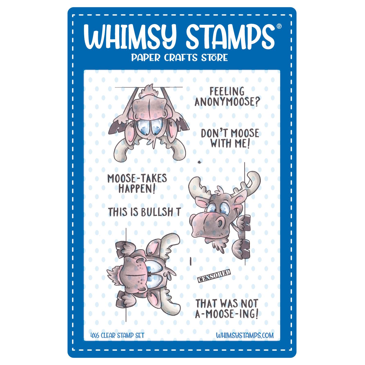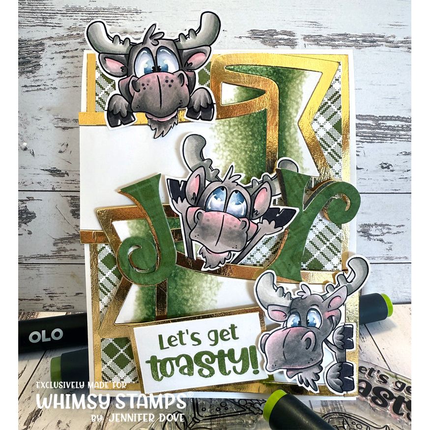 The Whimsy Stamps Moose-tude Clear Stamps, illustrated by Dustin Pike, brings a playful and humorous touch to your projects. This fun set features three moose faces peeking over a line, accompanied by six snarky sentiments. It coordinates perfectly with the Moose-tude Outline Die Set WSD003, sold separately. Crafted from high-quality photopolymer, these clear stamps are designed to be used with an acrylic block. The set is provided on a 4 x 6 inch polymer sheet, making it ideal for adding personality to your card making or crafting projects.