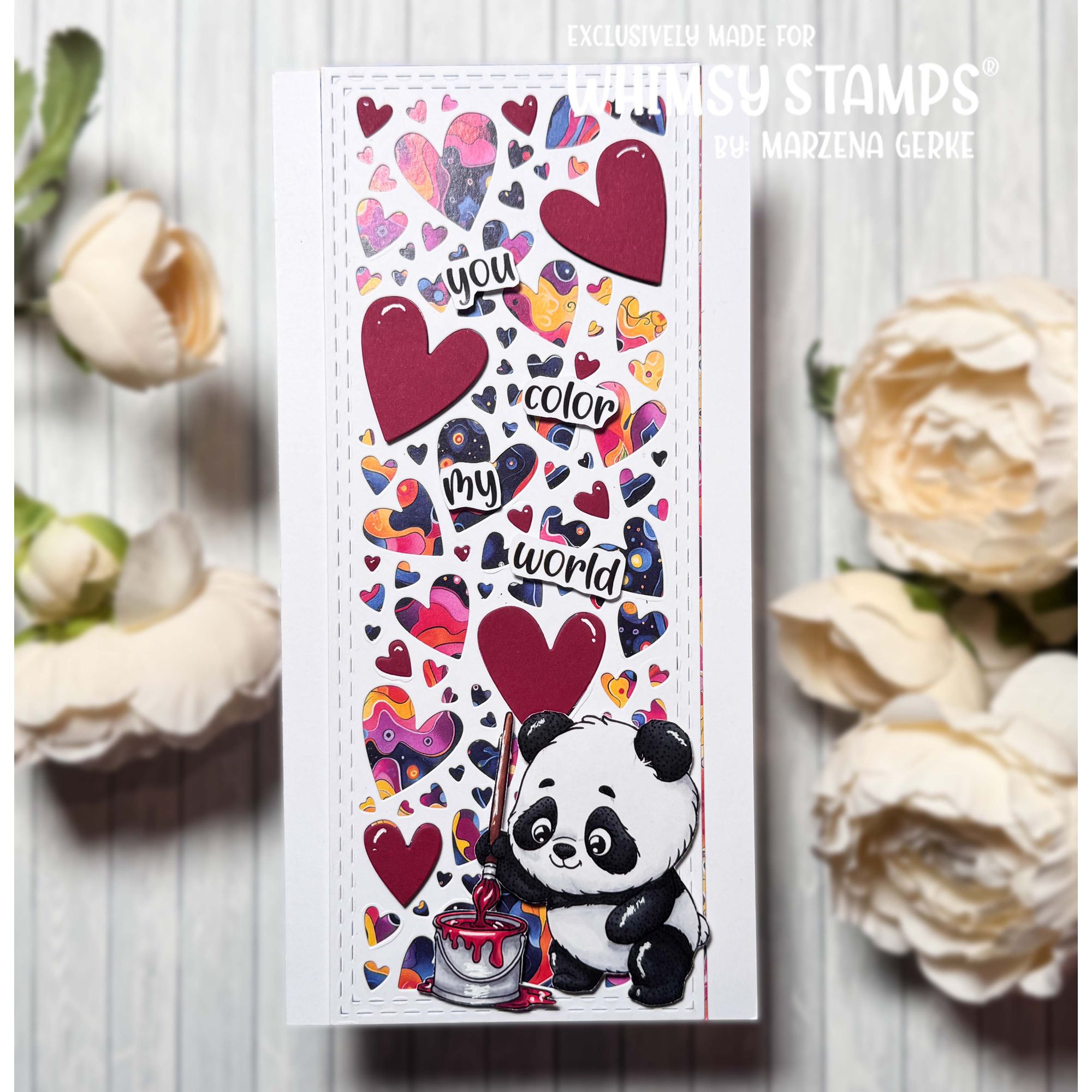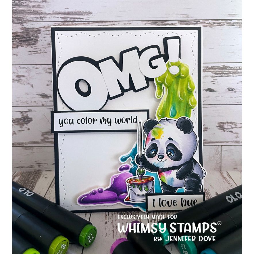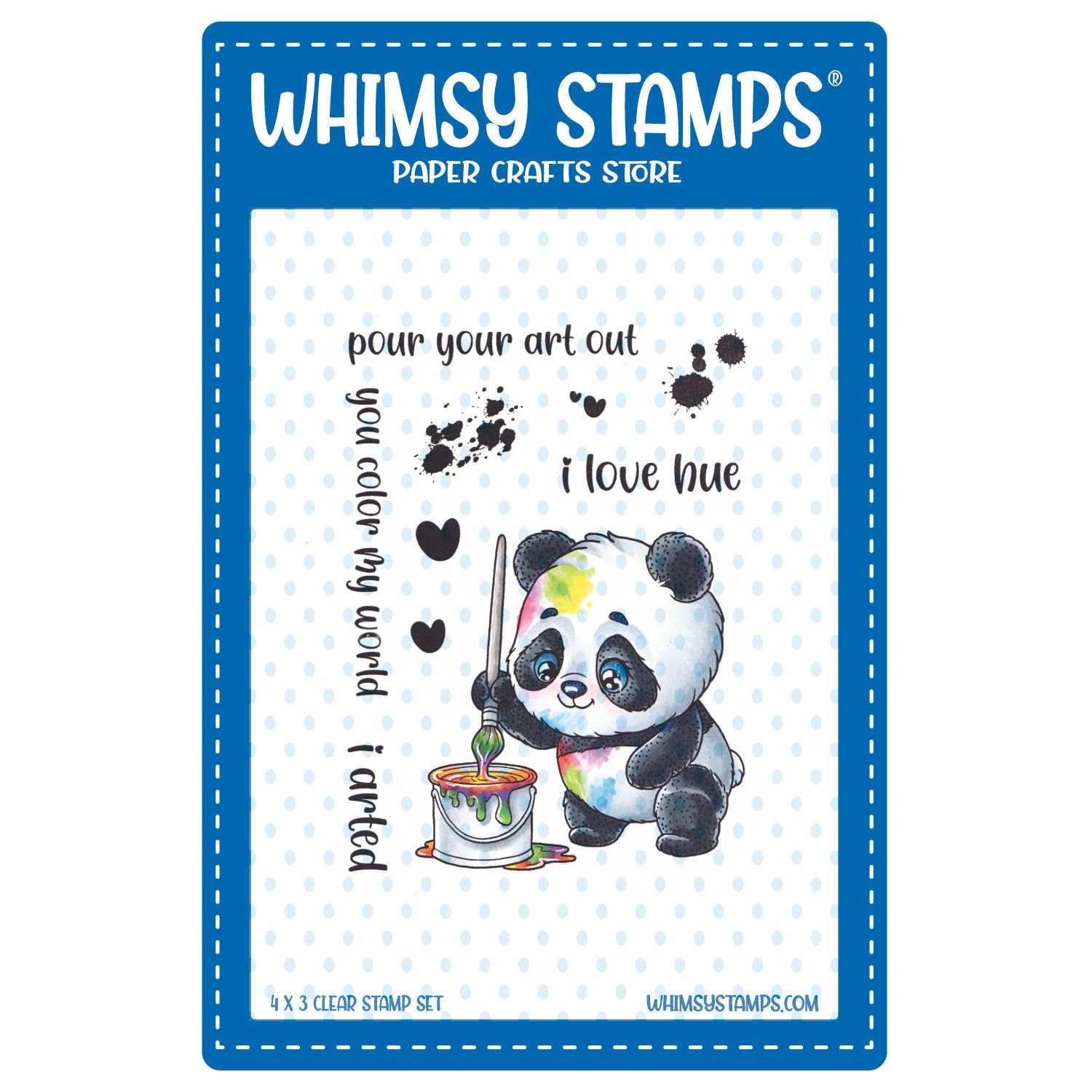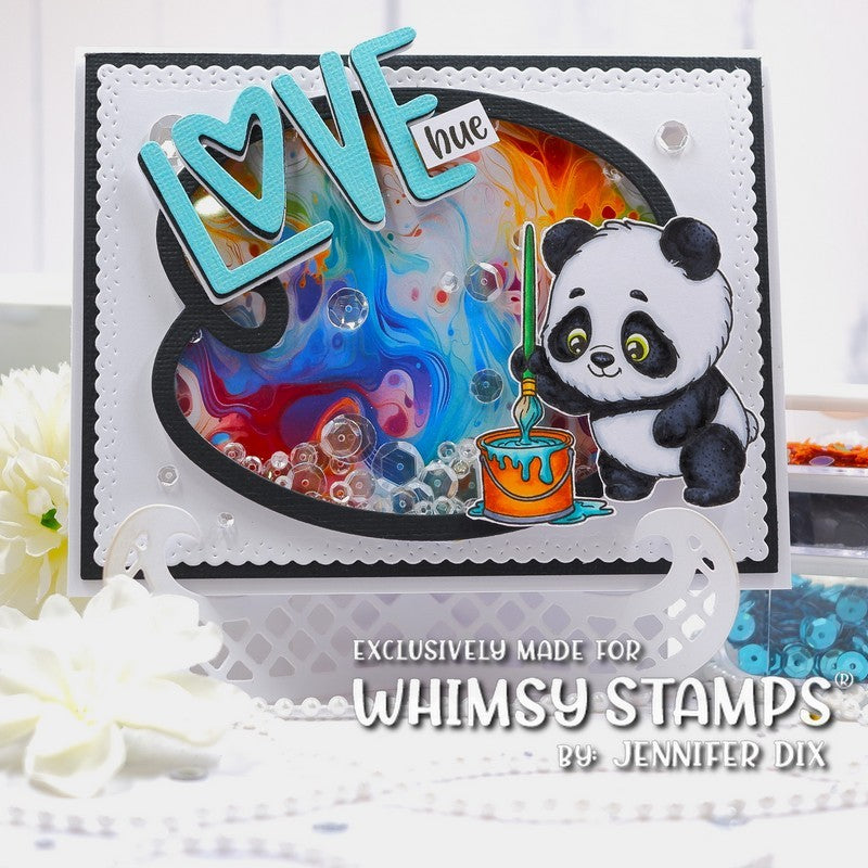 The Whimsy Stamps Panda Painter Clear Stamps, designed by Crissy Armstrong for Whimsy Stamps, is a charming 4.0 x 3.0 inch high-quality photopolymer stamp set. This delightful set features an adorable panda bear ready to paint, holding a paintbrush and a bucket of paint.