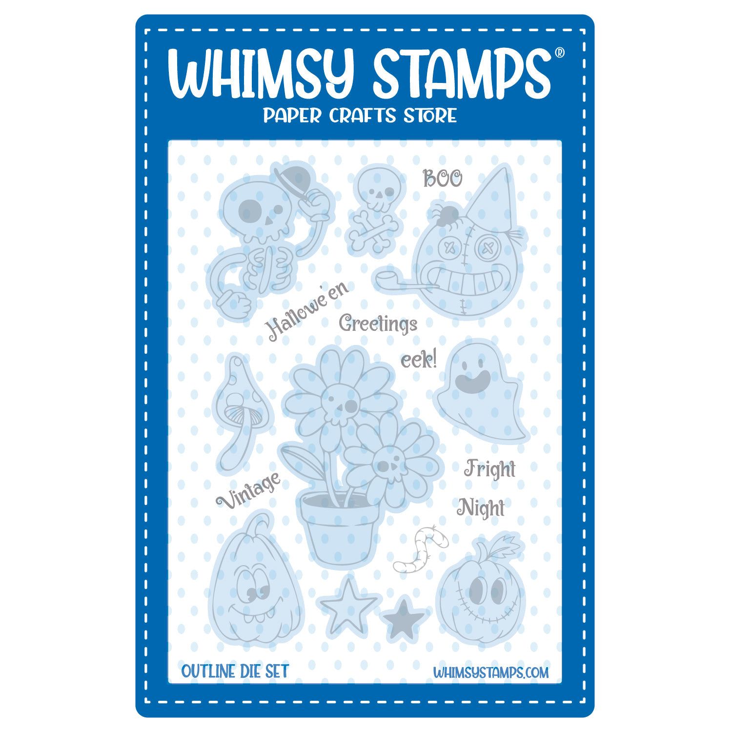 The Whimsy Stamps Primitive Halloween Outlines Dies are designed for Whimsy Stamps and coordinate with the Primitive Halloween Clear Stamps CWSD220a, which are sold separately. This set includes 10 outline dies, perfect for cutting out stamped images.