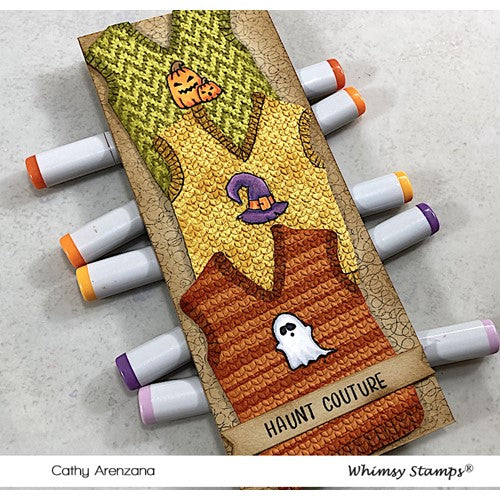 Whimsy Stamps Slimline Embossing Folder Sweater designed by Deb Davis for Whimsy Stamps.