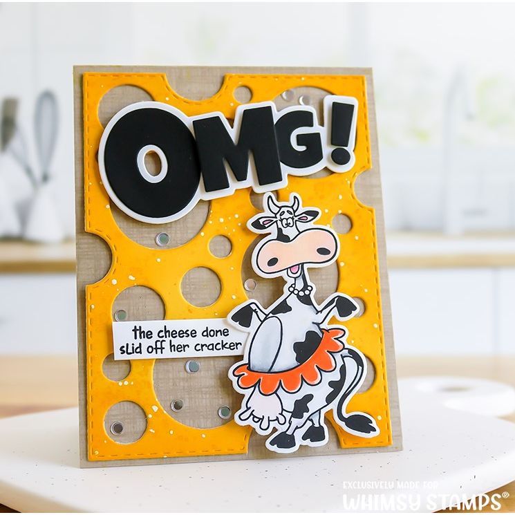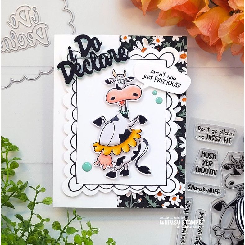 Clearly Whimsy Stamps Collection Southern Cow Bell clear stamp set designed by Deb Davis for Whimsy Stamps. A hilarious cow themed set with coordinating sentiments, perfect for all your heifer friends! Coordinates with our Southern Cow Bell Outline Die, sold separately.