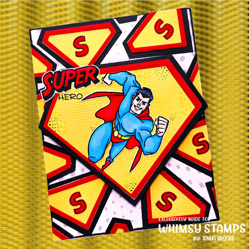 Whimsy Stamps Super Hero Badge Dies is a set of 11 nested dies, perfect for creating layered badge shapes, mats, or shaped openings.