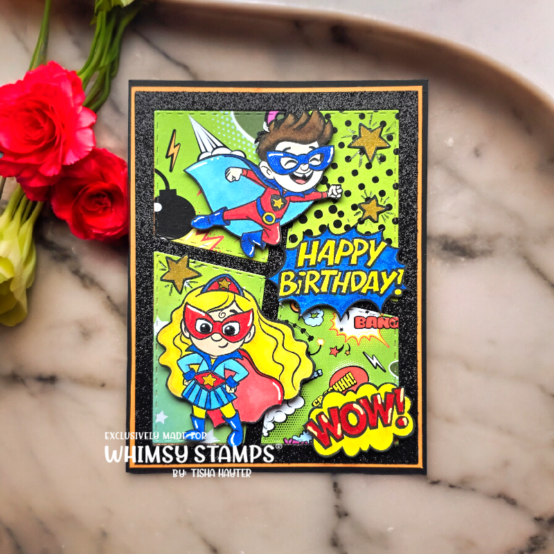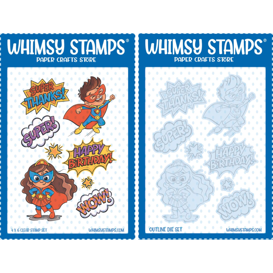 The Whimsy Stamps Super Kids Clear Stamp and Die Set combines the Super Kids Clear Stamps with the coordinating Super Kids Outline Dies. Designed by Krista Heij-Barber for Whimsy Stamps, this set is part of the Clearly Whimsy Stamps Collection.