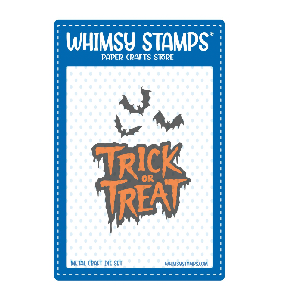 Whimsy Stamps Trick or Treat Dies bring frightful fun to your Halloween crafting. This 3-piece set includes a “Trick or Treat” word die with a coordinating shadow layer, along with three spooky bats to finish your eerie designs. Ideal for cards, tags, treat packaging, and more, this versatile set offers endless creative possibilities. Use it on its own or pair it with other Whimsy Halloween collection products for even more options. Compatible with most leading die cutting machines.