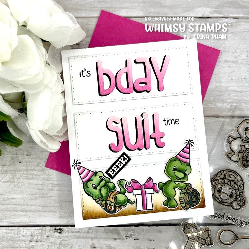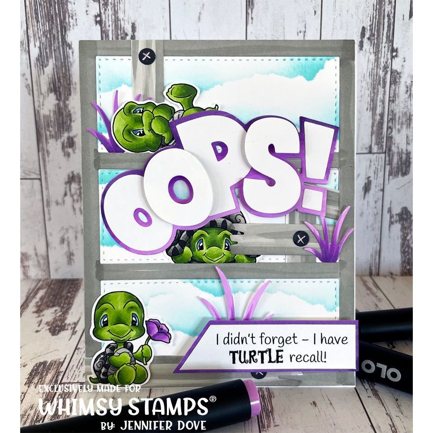 The Turtle Tales collection from Whimsy Stamps, expertly designed by Crissy Armstrong, is a standout addition to their product line. This collection, copyrighted by Whimsy Stamps, features top-notch photopolymer clear stamps that are designed to be used with an acrylic block. The stamps come on a polymer sheet measuring approximately 4x6 inches.