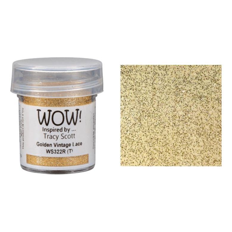 Introducing WOW Embossing Glitter in the shade Golden Vintage Lace a captivating addition to your crafting supplies. This translucent, regular-grade embossing glitter exudes a touch of elegance and vintage charm. Inspired by Tracy Scott, this particular shade was previously part of the Indulgence Trio. Golden Vintage Lace offers a radiant golden hue that's enhanced with a sparkling effect, making it perfect for adding a touch of glamour to your projects.